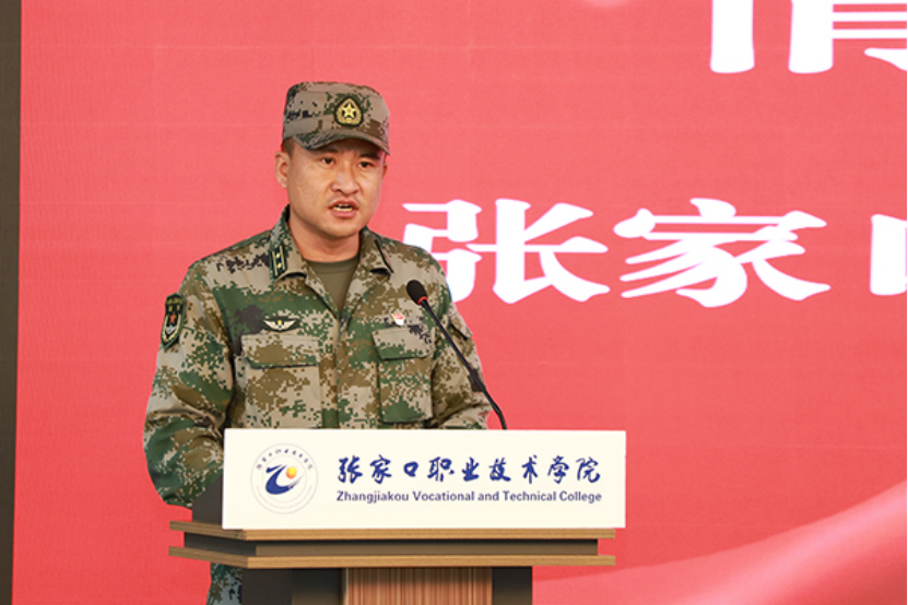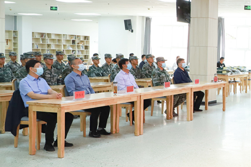 承训部队负责人、中国人民解放军32137部队副参谋长谭耕向学院领导表示感谢,同时也向全体师生送上节日祝福。他在讲话中表示,通过军训进一步加深了部队与学院、官兵与师生之间的联系,形成了互学互助的良好氛围。在下一步军训任务中,承训部队全体教官将与同学们一起,刻苦训练,以饱满的训练热情和昂扬的精神风貌圆满完成此次军训任务。