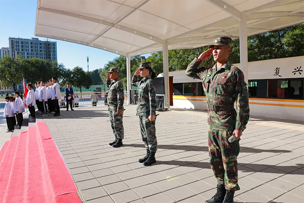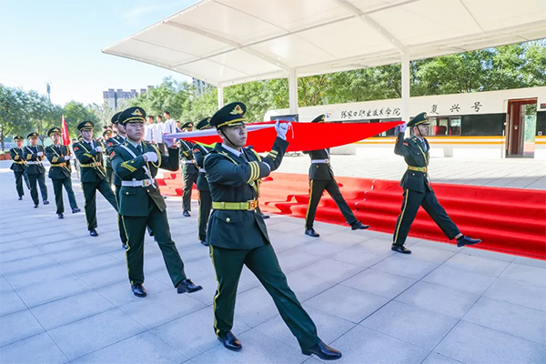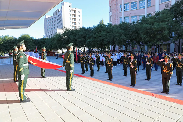 上午8时30分,英姿飒爽的国旗班队员迈着铿锵有力的步伐护送着鲜艳的五星红旗走向实训站台中央,全体师生面向国旗行注目礼。伴随着雄壮的《义勇军进行曲》,全体人员庄严肃立,齐唱国歌。