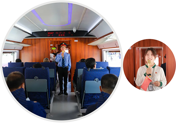 学院领导登上了复兴号高铁列车模拟舱,进行了实训课现场体验,并对实训课程提出指导意见。