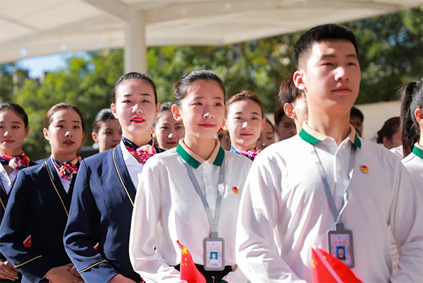 为弘扬民族精神,讴歌祖国辉煌成就,培植深厚的爱国主义情怀,进一步引导师生传承民族精神,逐梦新时代,10月1日,学院在客运乘务实训中心广场举办庆祝中华人民共和国成立72周年暨客运乘务实训中心实训第一课活动。党委书记冯印涛,党委副书记、院长王立军出席活动。
