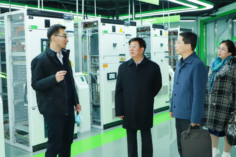 在北京工业职业技术学院相关部门负责人陪同下,冯印涛一行先后参观了施耐德电气城市能效管理工程师学院、中法能效管理应用人才培养和研究中心、建筑与测绘工程学院BIM建筑信息模型实训中心。