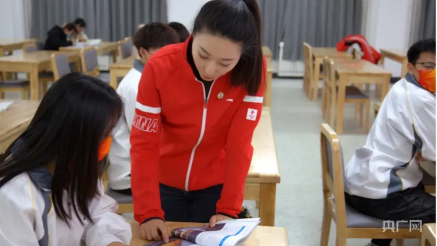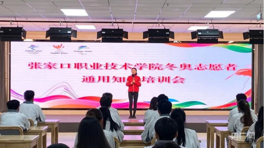 金铭钰在为青年志愿者做冬奥会通用知识培训(央广网记者 崇锦芳摄)