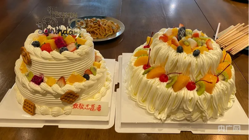 金铭钰为志愿者准备的生日蛋糕(央广网记者 崇锦芳摄)