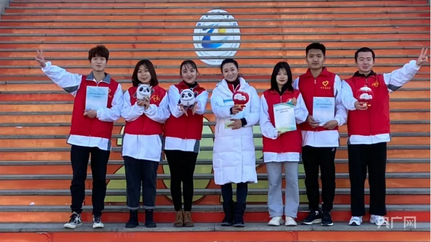 金铭钰和志愿者在一起 祝愿冬奥会圆满成功(央广网记者 崇锦芳摄)