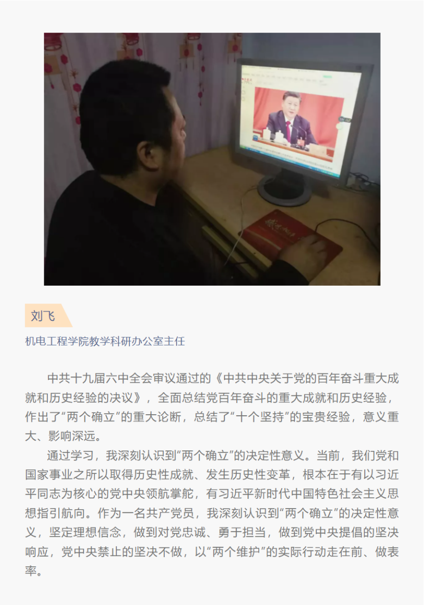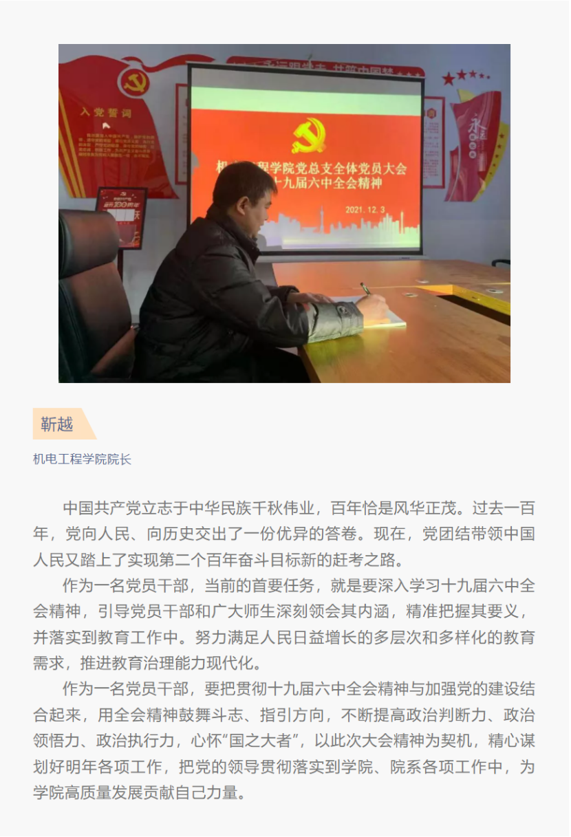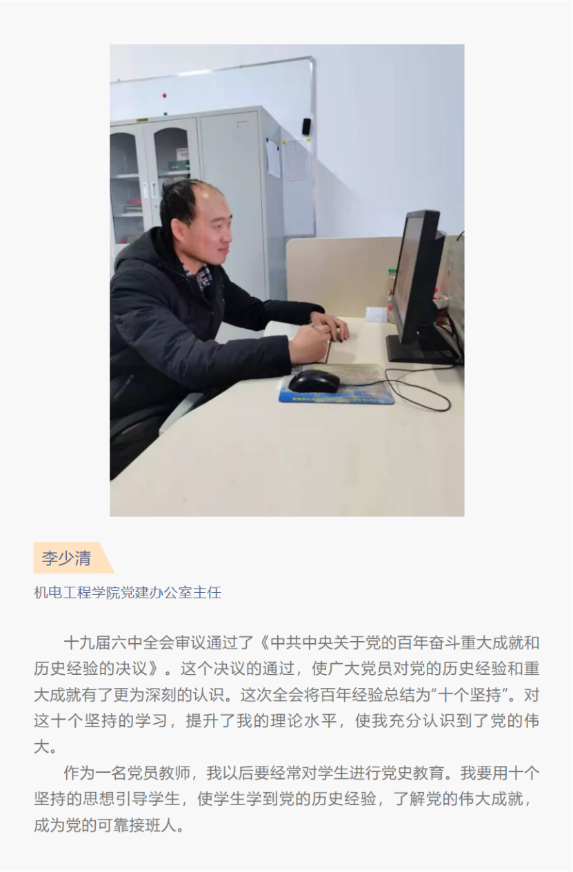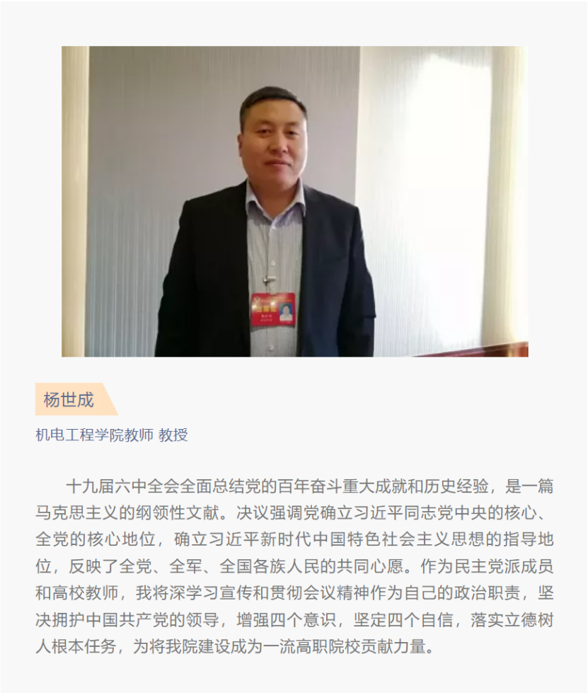 张职院热议 | 机电工程学院师生热议党的十九届六中全会精神