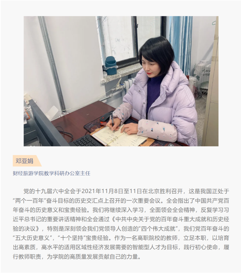 张职院热议 | 财经旅游学院教师热议党的十九届六中全会精神