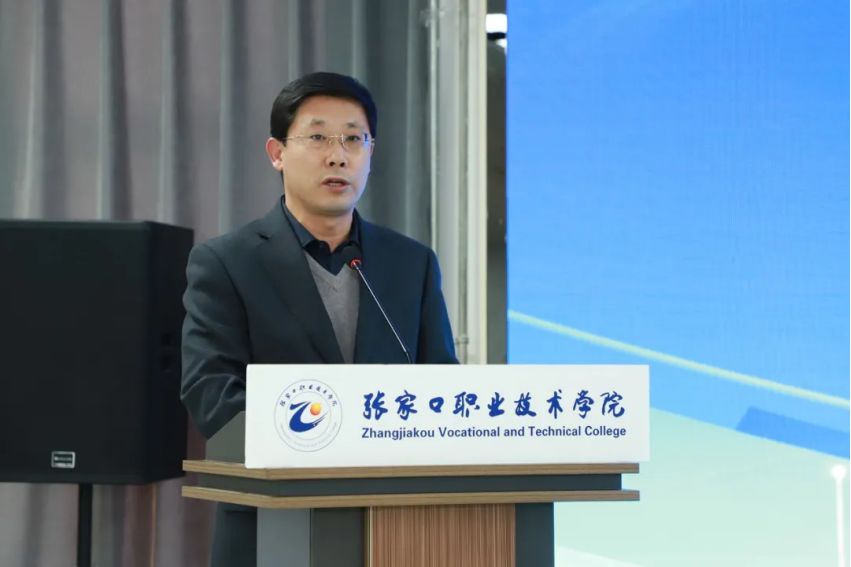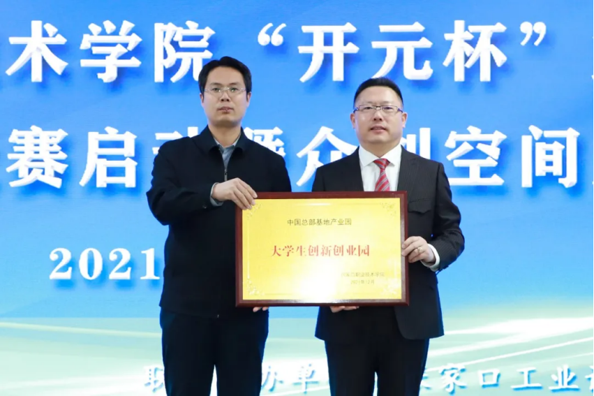 开元控股集团董事长侯冠夫为学院授 “中国总部基地产业园大学生创新创业园”牌,并发表致辞。他表示,开元控股集团与张职院开展校企合作以来,双方充分发挥自身优势,积极促进“产学研用”的创新模式,在创新创业、就业培训、实习实训、教学科研等方面开展密切合作。今后企业仍将与张职院师生一起,为师生开展科技创新和项目研发搭建学习实践平台,提供更广阔的空间。
