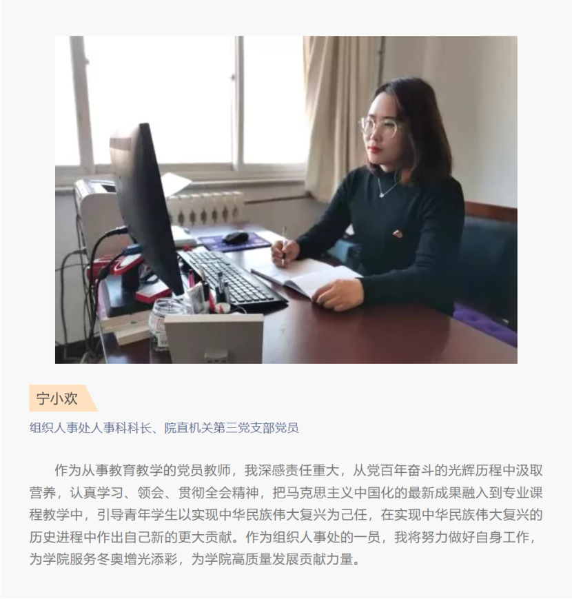 为进一步加强党组织建设,提升党建工作水平,发挥行政支部的战斗堡垒作用。近期,院直机关第三党支部以线上线下多种方式先后组织支部党员学习领会党的十九届六中全会精神,并撰写心得体会。以学促行,以行见效,把全会精神运用在工作中,为学院新时代高水平高职院校建设,作出更大贡献,以更加优异的成绩迎接党的二十大召开。