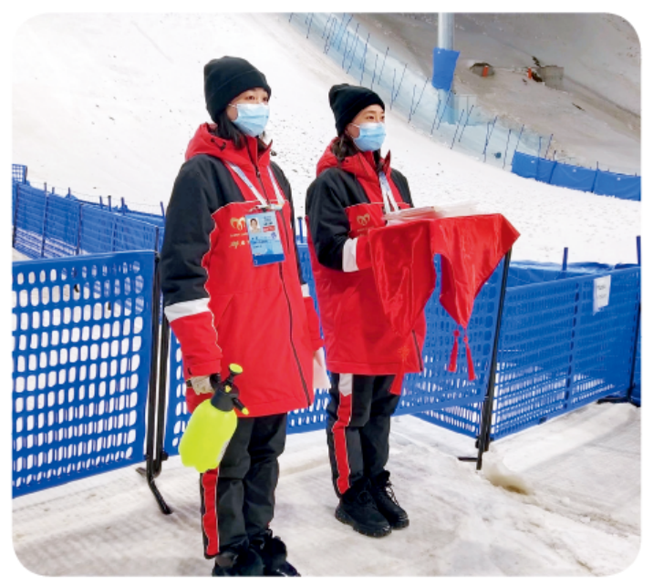 金铭钰(右)在“相约北京”系列冬季体育赛事张家口赛区测试活动中担任志愿者