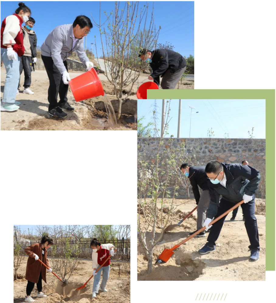 四月的怀来,春回大地,万物更新。上午9时30分,大家集体乘车抵达位于怀来县桑园现代农业园区的植树点。大家自发成组,分工明确。有的负责扶直树苗、压实土壤,有的则挥锹铲土、培土围堰,有的帮忙提水浇灌……现场一派繁忙有序、热火朝天的景象。