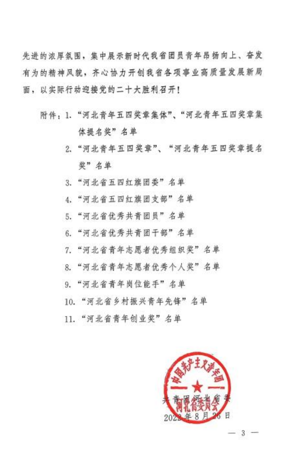 喜报 | 万象城官网在2022年“河北优秀青年奖”评选中受到表彰