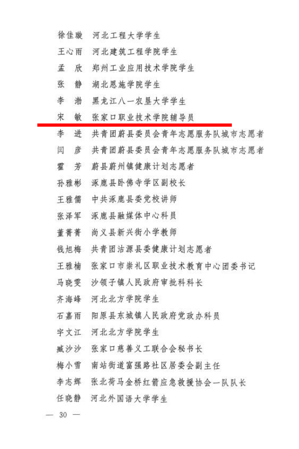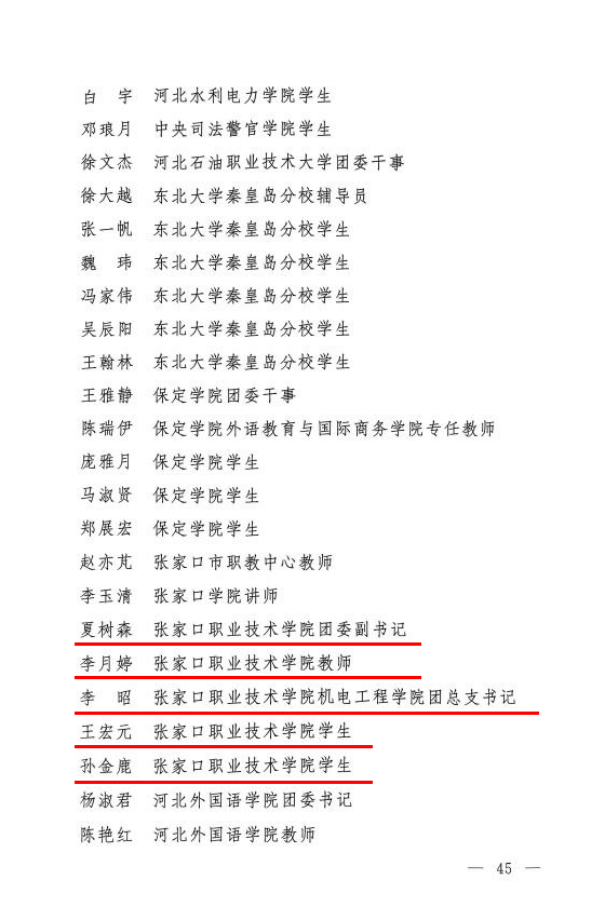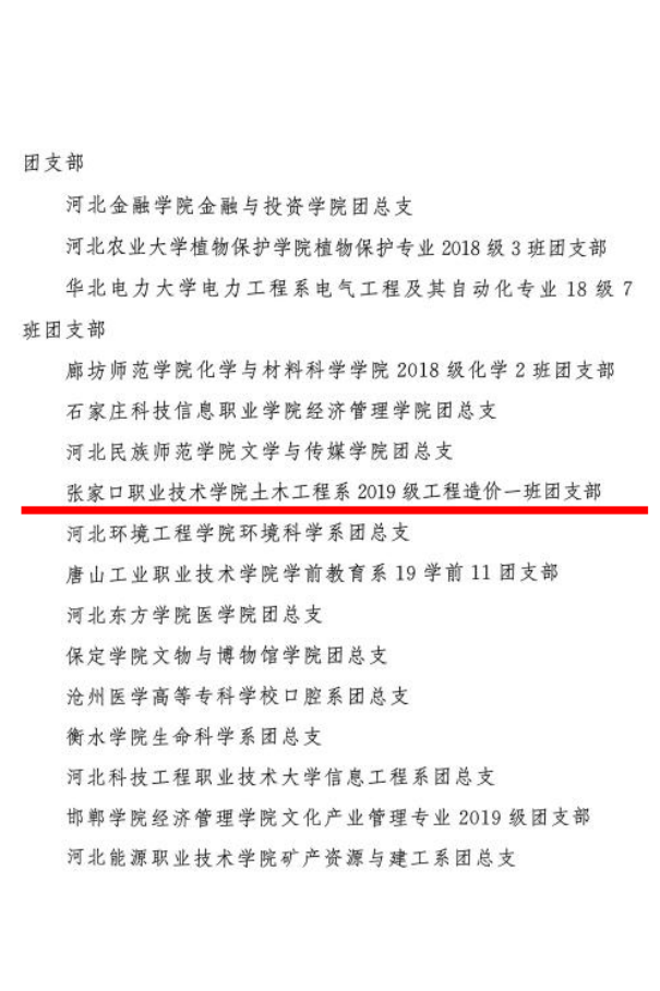 学院团委荣获“河北省五四红旗团委”称号,土木工程系2019级工程造价一班团支部荣获“河北省五四红旗团支部”称号,教师宋敏、夏树森、李月婷、李昭,学生王宏元、孙金鹿获“河北省青年志愿者优秀个人奖”。