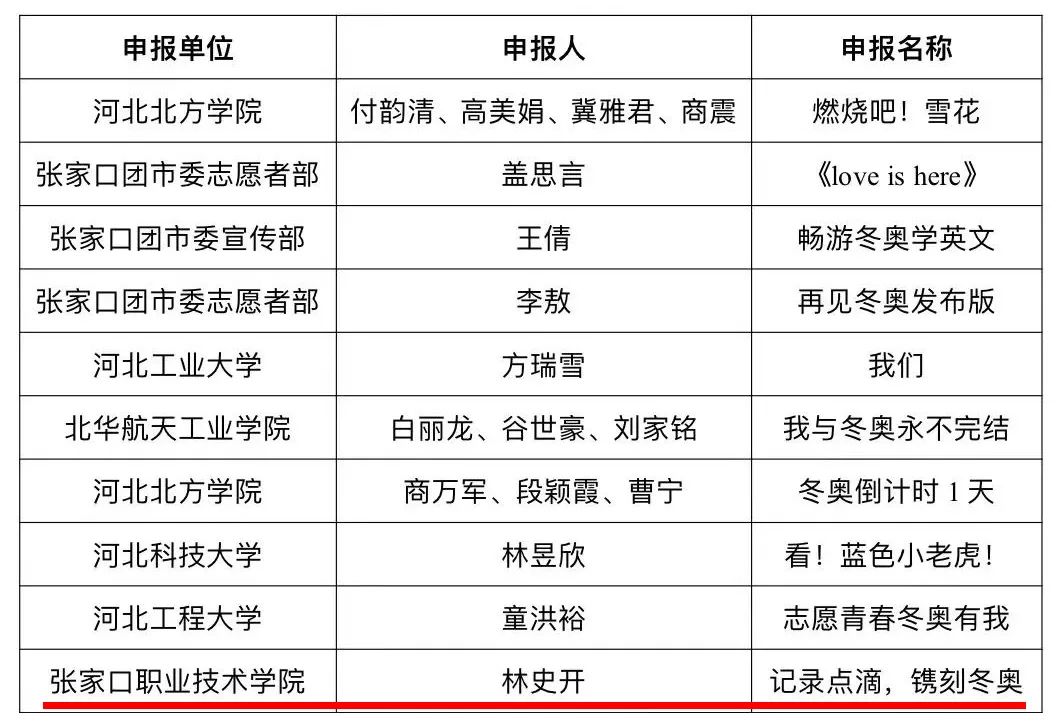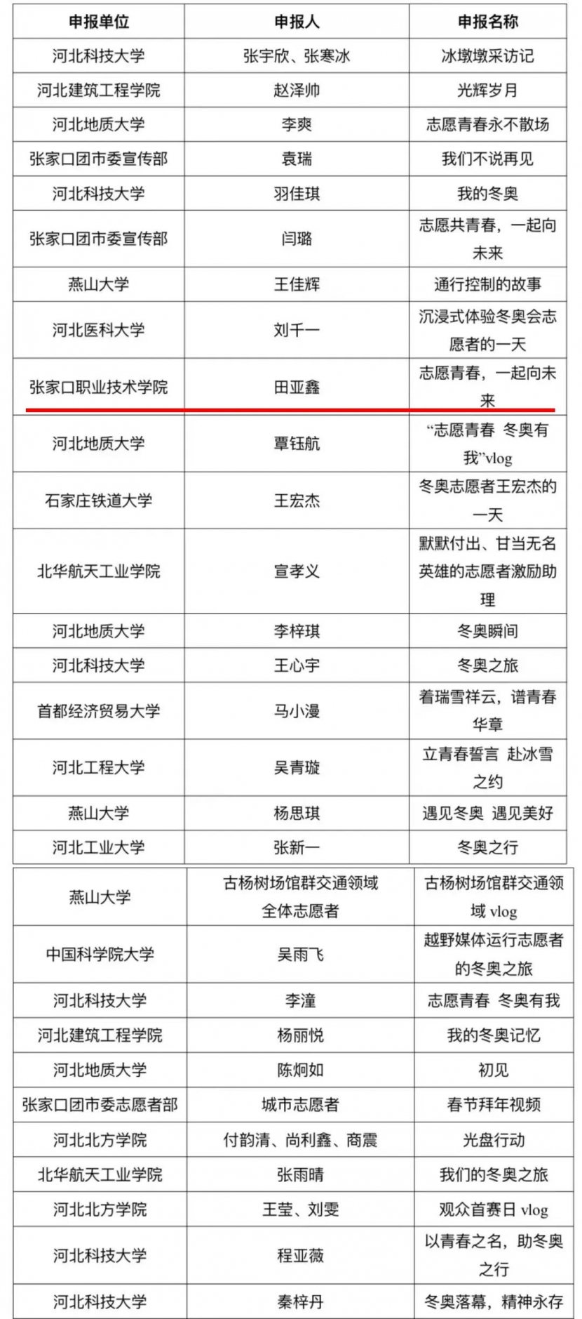 日前,由共青团河北省委开展的“志愿青春 冬奥有我”vlog短视频征集活动评审结果揭晓,万象城官网共有2项作品获奖。其中,短视频《记录点滴,镌刻冬奥》(申报人:林史开)荣获一等奖,短视频《志愿青春,一起向未来》(申报人:田亚鑫)荣获三等奖。