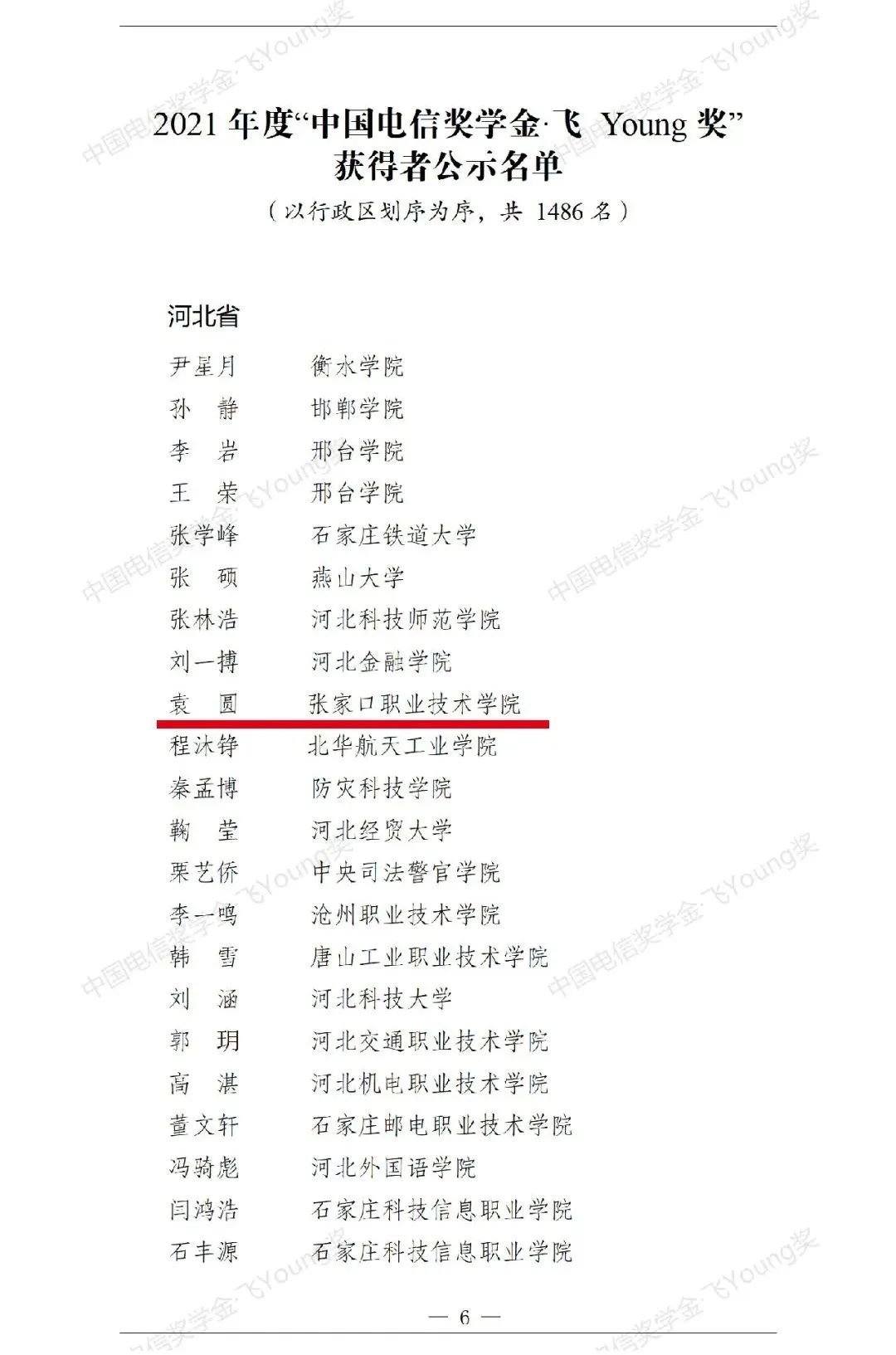 近日,由共青团中央、中国电信集团公司、中华全国学生联合会主办的2021年度“中国电信奖学金·飞Young奖”遴选活动结果揭晓,经校级推选、省级初评、全国评审,万象城官网土木工程系2020级工程造价五班学生袁圆位列获奖者名单。