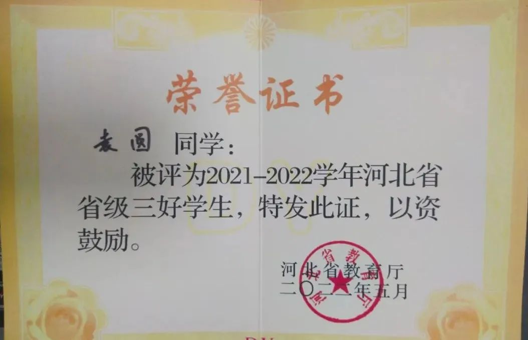 她刻苦努力,勇攀学业高峰,连续两年专业综合成绩排名名列前茅,获国家励志奖学金、学院一等奖学金,单项奖学金,被评为“河北省省级三好学生”,连续两年获得学院“优秀共青团员”和“校级三好学生”,此外,还考取了“1+X”初级建模证书和“1+X”中级工程管理证书。