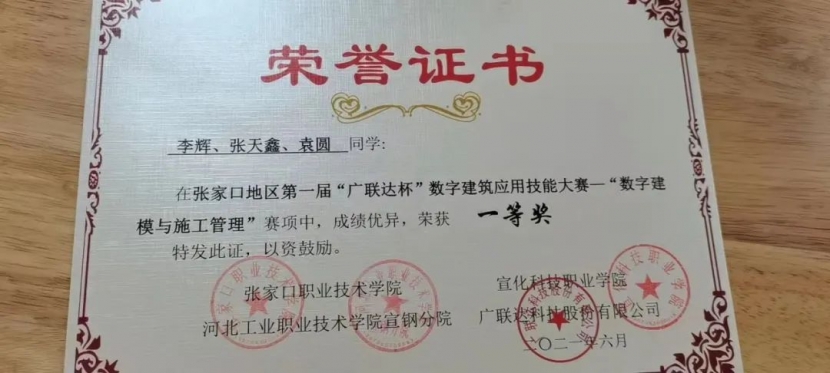她积极参加各项职业技能大赛,并获得2021年河北省“1+X”数字建模及施工应用大赛三等奖,张家口“广联达杯”数字建筑应用技能大赛一等奖;2022年再次报名参加2022年河北省“1+X”数字建模及施工应用大赛和河北省第一届职业技能大赛C80建筑信息建模(世赛),目前正在积极努力备赛。