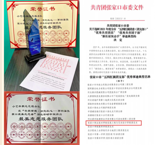 持续推进学生志愿服务活动,打造志愿服务品牌。入选冬奥赛会志愿者3人、城市志愿者16人、冬奥会(张家口赛区)火炬接力活动演出23人、冬奥宣讲团3人。2022年,学院团总支荣获张家口市“五四红旗团支部”称号,小艺术家志愿服务团队荣获“第四届张家口市最美服务团队”,三名学生被评为张家口市最美大学生,学院获得学校冬奥服务先进集体称号。