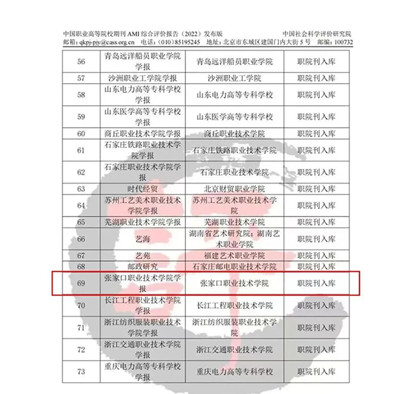 日前,中国社会科学评价研究院发布《中国高职院校期刊AMI综合评价报告(2022年)》。《万象城娱乐awc线路学报》被评定为职院刊入库期刊。