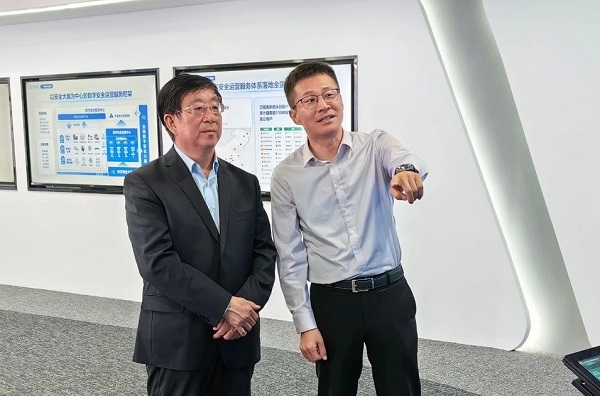 在360教育行业总经理邹宏岩和360校企合作项目经理周晓龙陪同下,冯印涛一行实地参观了公司办公区、国家级网络安全应急响应中心、大数据与安全协同创新中心,了解企业运行及人才需求等情况。