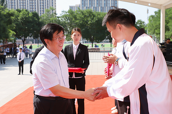 党委书记冯印涛为优秀毕业生代表颁奖。