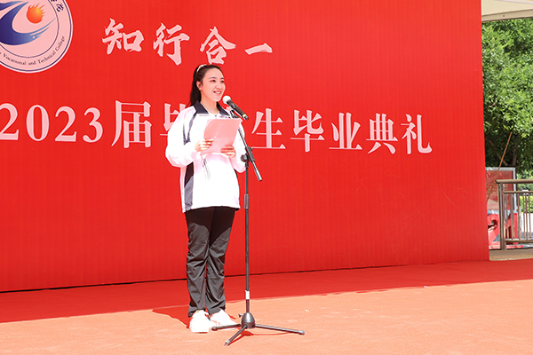 毕业生代表、机电工程学院2020级学生侯京奥在发言中感谢母校及恩师的辛勤培养,励志以饱满的激情和张职人特有的姿态,奉献社会,实现自我,为实现中华民族伟大复兴的中国梦贡献青春力量。