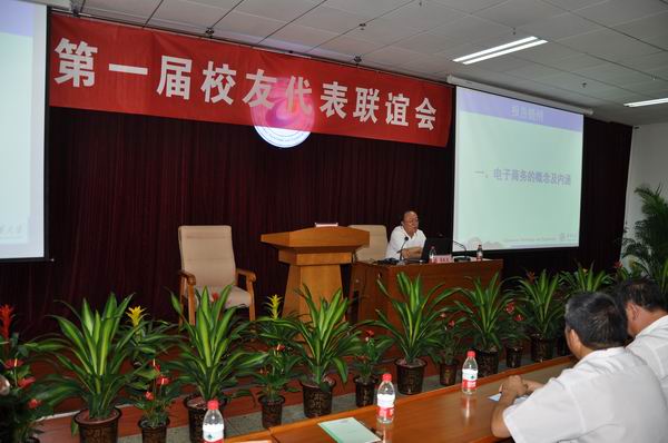 柴跃廷教授从自己的学习经历谈起,告诫在场的师生不懈的努力是未来成功不可或缺的要素。柴教授结合专业特点、发展方向,向与会人员详尽讲解了电子商务发展的问题、机遇和挑战,并同与会校友一道从学校专业设置、学生教育培养等方面进行了交流。