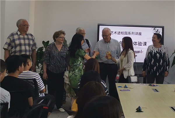 讲座临近尾声,恰逢俄罗斯友人到访万象城官网,客人们走进课堂,体验了香囊和面塑的制作过程,同学们把自己制作好的香囊作为礼物赠送给俄罗斯朋友,让他们品味中国传统文化,增进友谊。