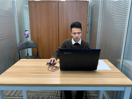 (3)考试开始前,考生需要先登录移动端“智考通”,用前置摄像头360度环绕拍摄考试环境,随后将移动设备固定在能够拍摄到考生桌面、考生电脑桌面、周围环境及考生行为的位置上继续拍摄(详见说明书中《智考通操作手册》《智考云在线考试规范》)。