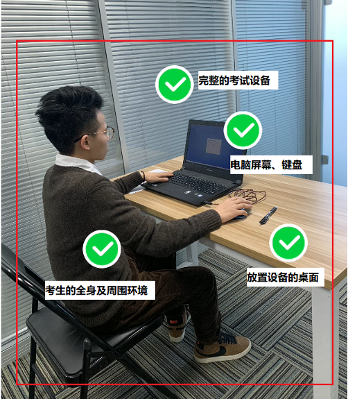 (4)考生应参照说明书中《智考云在线考试规范》的要求,调整好摄像头的拍摄角度和身体坐姿,并确保上半身能够在电脑端的摄像范围中,拍摄角度应避免逆光。
