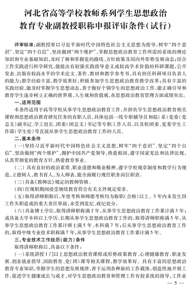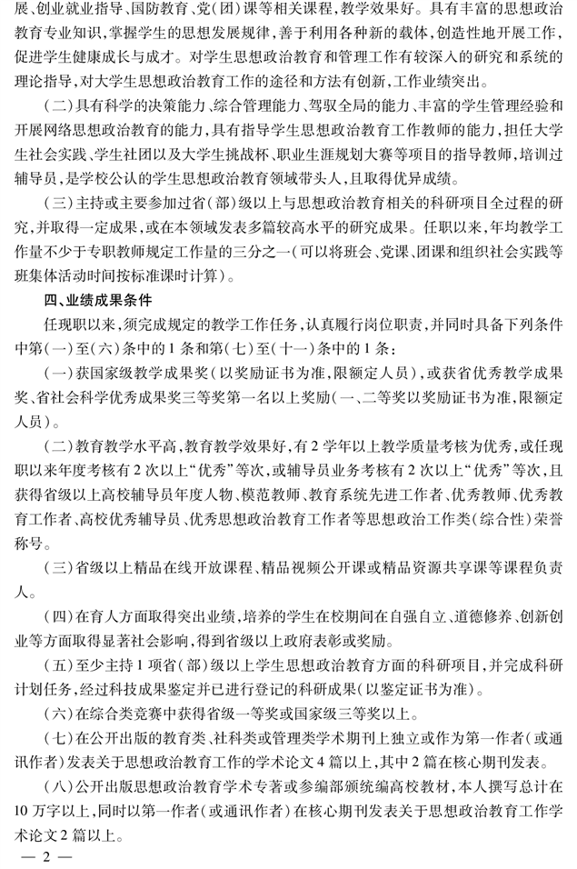 高校教师思政教育专业教授职称申报评审条件